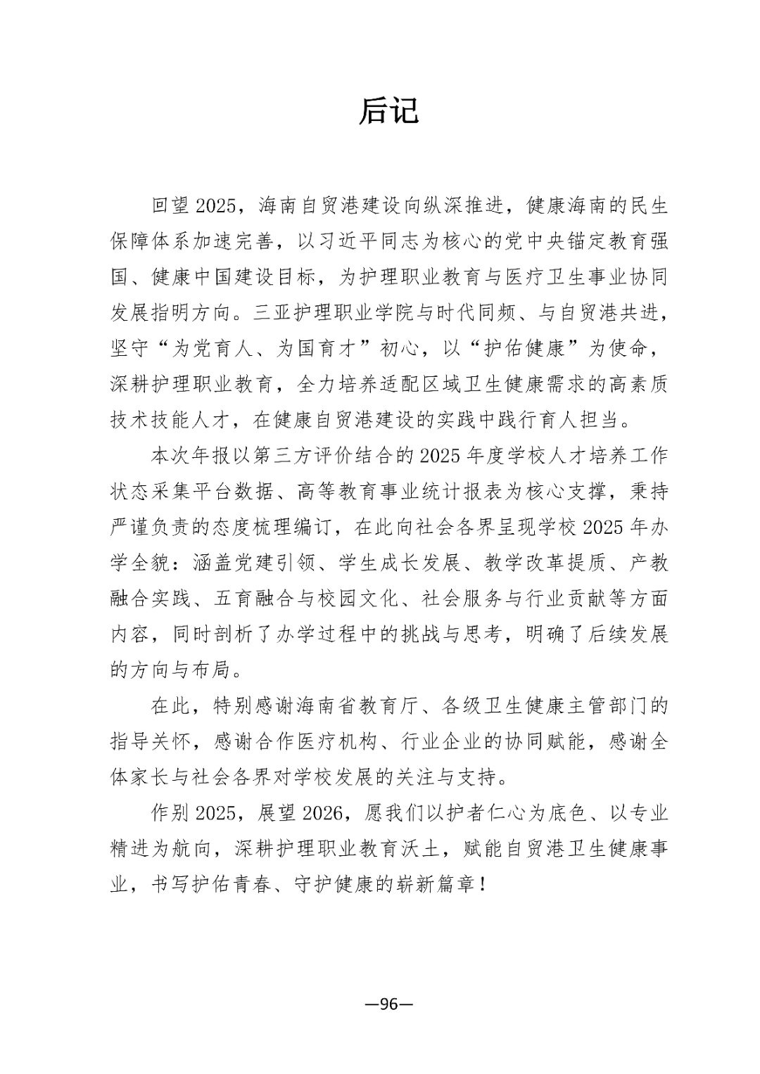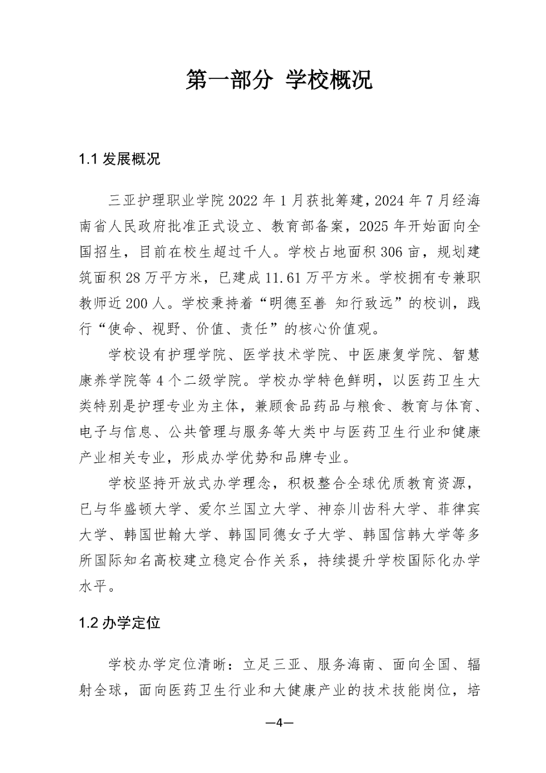 三亚护理职业学院高等职业教育质量报告(2025年度)